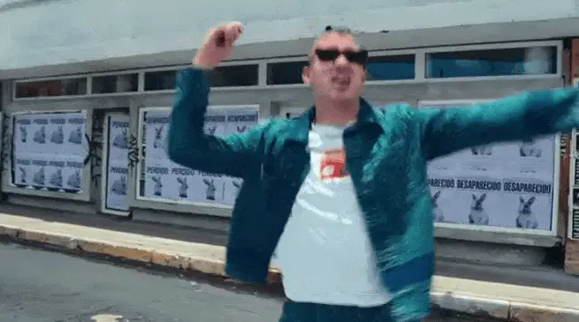 Roccibella reacts to a total failure with a hand gesture against a teal background.