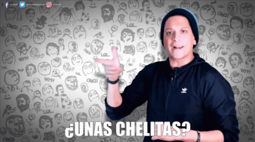 A man asks 'Unas Chelitas?' (Some Beers?) in front of a wall of meme faces.