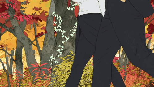 Andy and Fuuko Izumo from Undead Unluck walk through a vibrant autumn forest in the anime's second ending.
