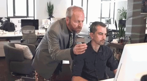 Two men review a 3D toilet design on a computer, with one man giving feedback to the other.