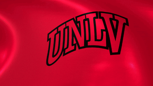 The vibrant red UNLV Rebels flag waves proudly, featuring the iconic black 'UNLV' logo.