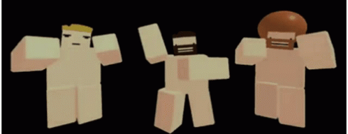 Roblox characters Власов, Морозов, and Сперанский perform a synchronized dance.