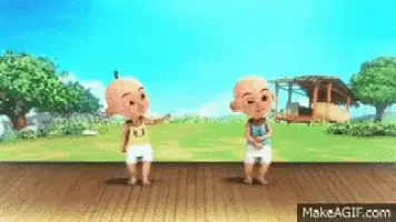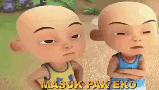 Two animated characters, Upin and another, from the Malaysian series, with 'Di hobah SWAG' text.
