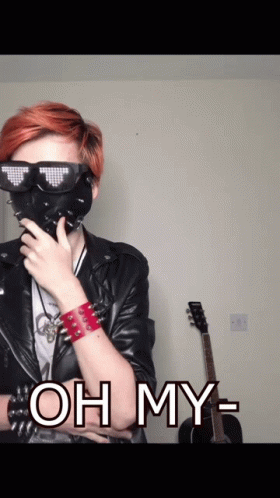 A person in a black mask and pixelated sunglasses reacts with 'Oh My-' and 'Urghhh', expressing frustration or surprise.