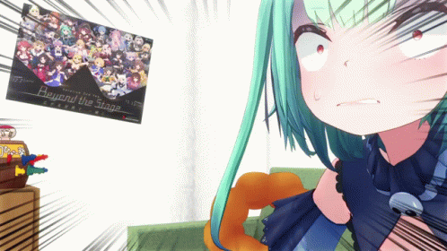 Uruha Rushia from Hololive shows a shocked expression, making peace signs with her hands.