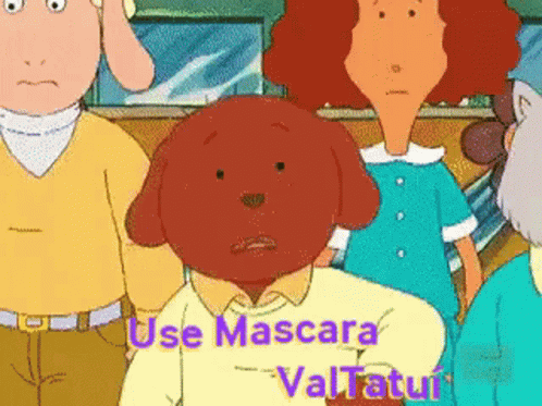 Arthur characters wear face masks with the message 'Use Mascara ValTatui' for public health awareness.