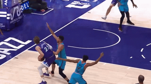 Lauri Markkanen of the Utah Jazz makes a shot during a basketball game.