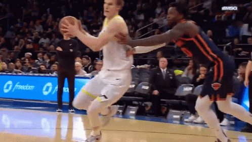 Lauri Markkanen of the Utah Jazz executes a powerful dunk during an NBA basketball game.