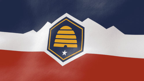 The new Utah state flag, featuring a beehive emblem, a star, and mountain peaks.