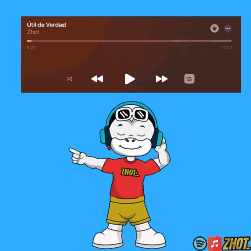 Cartoon character Zhot dances to 'Útil de Verdad' by Zhot, promoting learning and motivation through music.