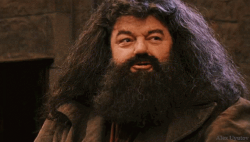 Uyutov Alexuyutov, resembling Hagrid, makes a funny face and reacts with 'Yes Yes Yes' to something.