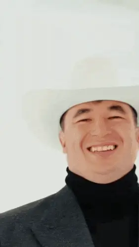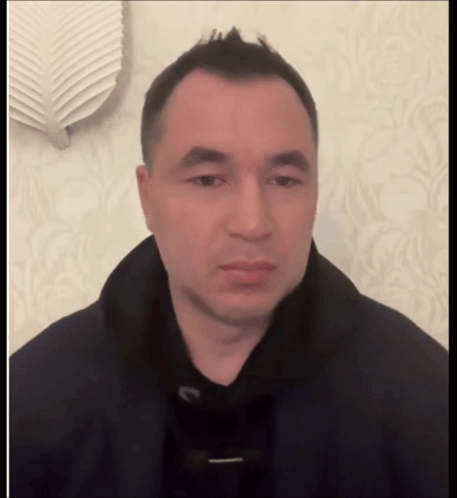 Uzbek Arestovich looking seriously at the camera, wearing a black jacket.