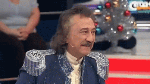 Farroukh Zakirov, an Uzbek man, looks confused and asks 'a.?' while wearing a decorated blue jacket.
