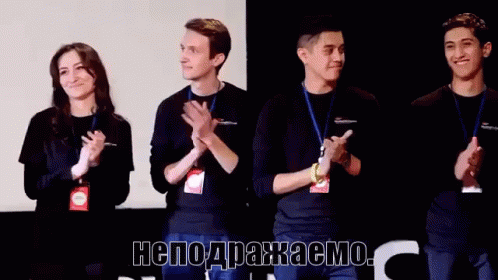 Donchik and a group applaud with unimitable sarcasm at an Uzbek TedX event.