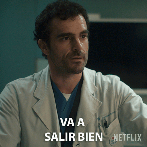 Néstor, a man in a lab coat, with the reassuring phrase 'Va A Salir Bien' (It's going to be alright).