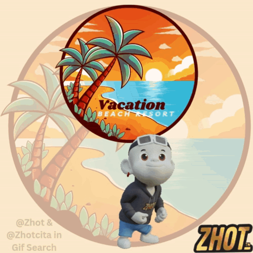 a cartoon of a monkey on a beach with the words vacation beach resort on it