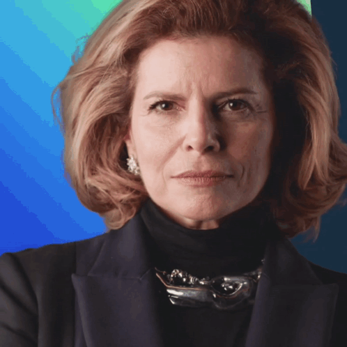 Actress Debora Bloch from Vale Tudo looks intensely at the camera, wearing a black turtleneck.