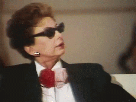 Odete Roitman, from the Novela Vale Tudo, wearing sunglasses and a distinctive red and pink bow tie.