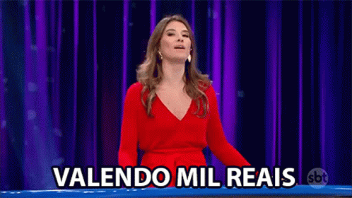Rebeca Abravanel apresenta o jogo Valendo Mil Reais no programa Roda a Roda Jequiti, oferecendo dinheiro.