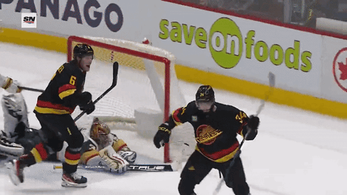 Phillip Di Giuseppe of the Vancouver Canucks on the ice during an NHL hockey game, with arena signage visible.