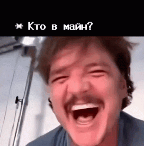Ваня laughing heartily with a wide-open mouth, accompanied by Russian text 'Кто в майн?'.