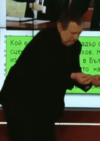 Krasi Radkov as Vankata on Slavi's Show, gesturing animatedly in front of a green screen.