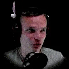Man with a beard looking up with wide, surprised eyes, appearing shocked.