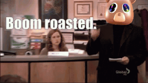 Vceezy Vcente's Michael Scott meme: a man in a bear mask says 'Boom roasted' in The Office.