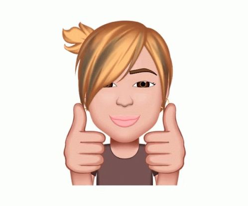 Animated woman with blonde hair and a friendly smile gives two enthusiastic thumbs up.