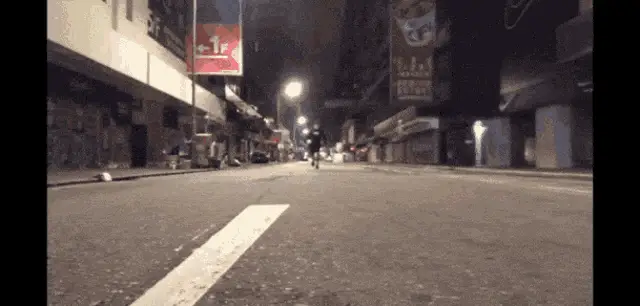Misha Marvin and a woman happily running down a city street at night during an evening walk.