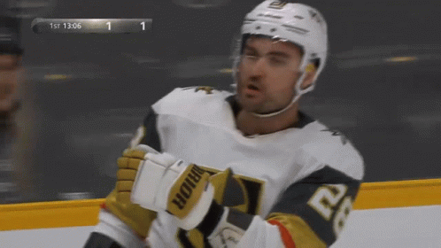 William Carrier celebrates a goal for the Vegas Golden Knights in an NHL hockey game.