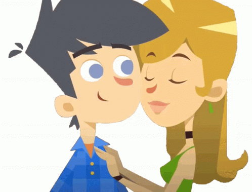 A sweet moment as a cartoon couple from Vemsistemi Gruppovem shares a tender kiss.