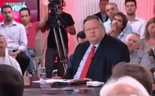 Evangelos Venizelos, a Greek politician from Pasok, emphatically declares 'Absolutely!' while hitting a table.