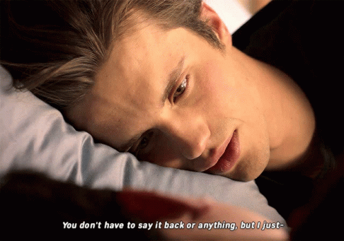 Benji from Love, Victor, lies on a pillow, making a vulnerable confession: 'You don't have to say it back or anything, but I just-'