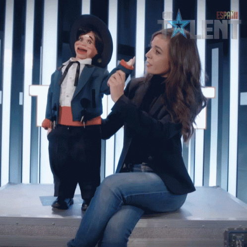 Celia Muñoz, the ventriloquist, interacts with her puppet on Got Talent España.