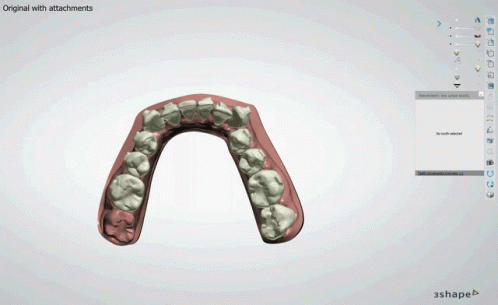 A 3D dental model of a lower jaw showing teeth alignment progression through multiple setups in dental software.