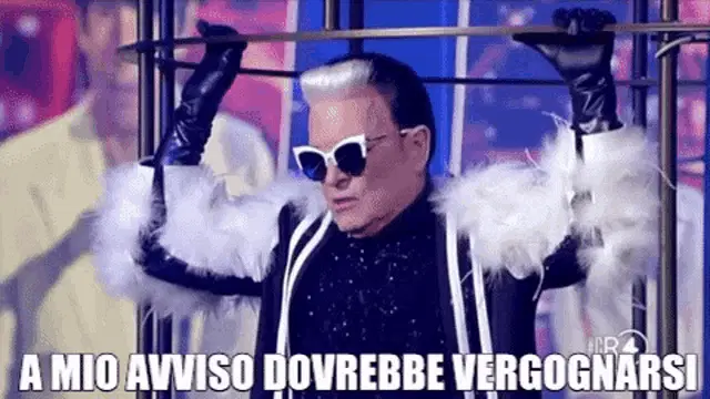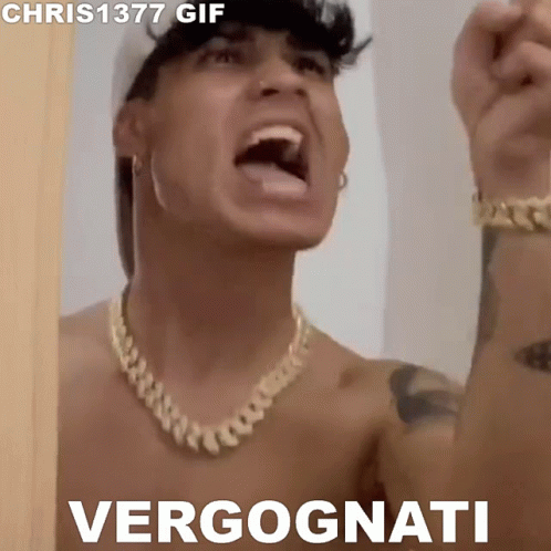 Gianmarco Rottaro shouting 'Vergognati' (Shame on you) with an intense expression.