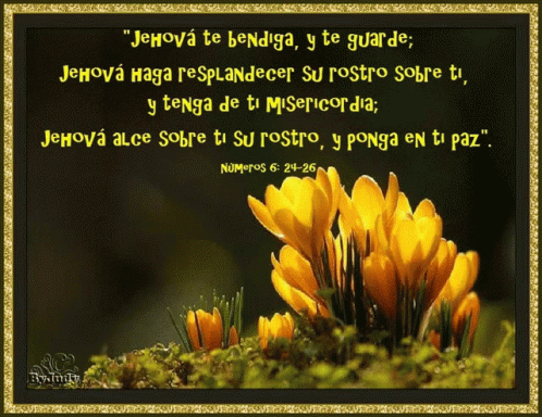 A beautiful image of yellow flowers accompanies the Spanish Bible verse from Numbers 6:24-26.
