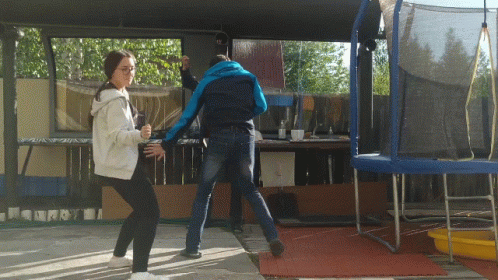 Friends enjoy a lively outdoor gathering, dancing and having fun near a hookah setup.