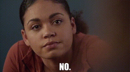 Vic Hughes (Barrett Doss) from Station 19 makes a clear 'no' gesture with an exasperated expression.