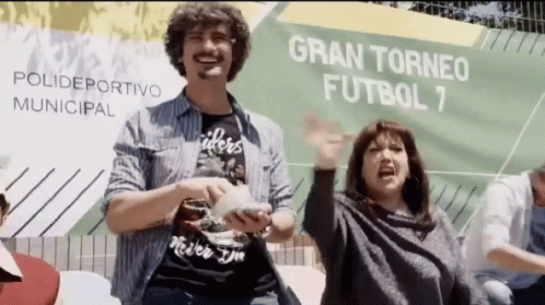 Antonio Pagudo and Loles León (Menchu) reacting intensely at a football tournament.