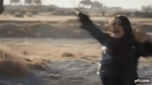 Victoria Lamas and Dulce Maria: A woman with arms outstretched in a vast desert landscape with cacti.