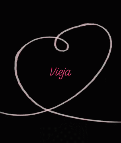 An animated drawing of a heart outline appearing on a black background, with the Spanish word 'Vieja' inside.
