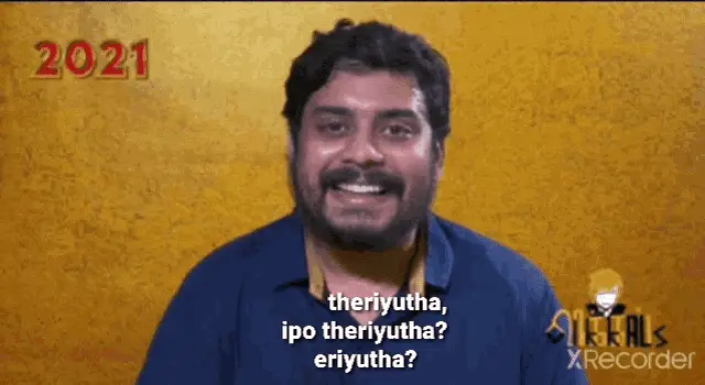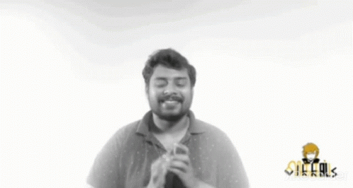 Vikkals Vikram, also known as Vikram Arul Vidyapathi, smiles mischievously in this black and white clip.