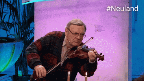 Heinz, a skilled violinist, performs passionately in front of lit candles at a Neuland event.