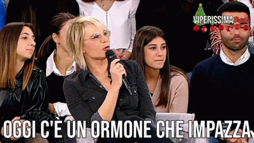 Maria De Filippi humorously comments on a 'hormone going crazy' and 'going around the studio' during Amici19.