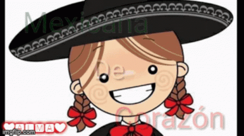 Animated celebration of Mexican culture featuring a cartoon girl in a sombrero and fireworks with 'Viva Mexico!'.