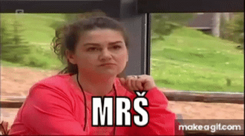 Alma Husika from Viza Za Buducnost looking angry with the word 'MRŠ' displayed on screen.