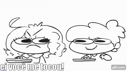 Two cartoon characters argue, with one yelling 'You touched me!' and threatening to kill and destroy the other.
