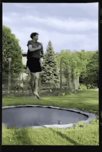A man performs a volare rotate jump on a trampoline in a park, showcasing cool spinning moves.